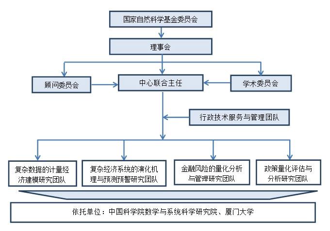 理事会由国家自然科学基金委员会、中国科学院数学与系统科学研究院、厦门大学领导担任。主要负责:修订研究中心章程;审议并决定研究中心的中长期发展规划;审议并决定研究中心主任的年度工作报告和年度工作计划;审议并决定研究中心各种管理规章制度;决定其他须由理事会决定的研究中心重大事项。