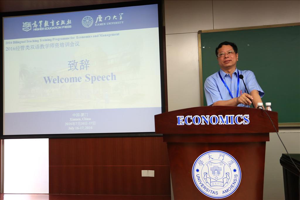7月16日,2016经管类双语教学师资培训会议在厦门大学经济楼举行开幕仪式。本次会议由高等教育出版社、厦门大学经济学院和厦门大学王亚南经济研究院共同主办,来自厦门大学、清华大学、上海财经大学的多位学者共聚一堂,分享双语教学经验,探索推动经管类高校教学的国际化进程。