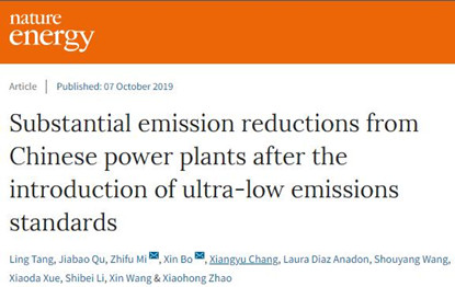 2019年10月7日,中国科学院大学经济与管理学院院长汪寿阳教授及其合作者的研究论文“Substantial emission reductions from Chinese power plants after the introduction of ultra-low emission standards”(超低排放改造大幅降低中国火电排放)作为封面论文在国际权威期刊Nature Energy(影响因子54,全球期刊排名第7)上发表。