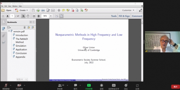 7月18日下午,Linton教授第一次授课带来题为“Nonparametric Methods in High Frequency and Low Frequency”的讲座。