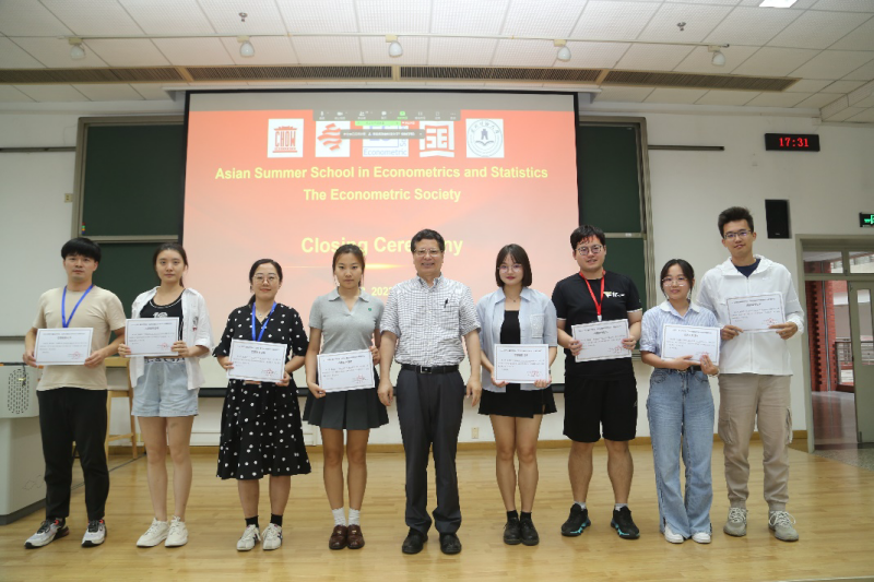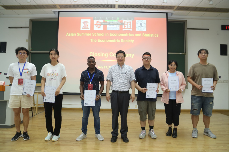 最后,洪永淼教授和高集体教授为学员颁发了结业证书,为志愿者颁发了荣誉证书,2023世界计量经济学会“亚洲计量经济学和统计学暑期学校”圆满落幕。