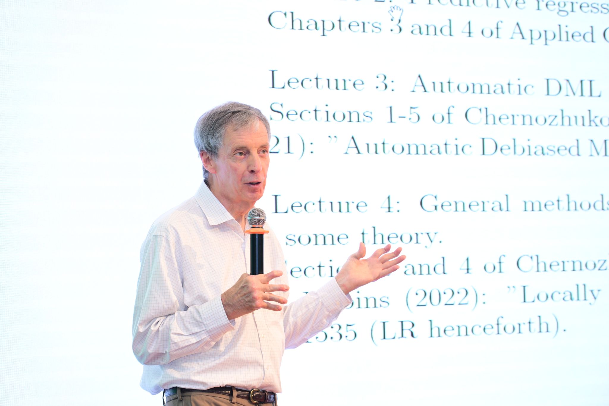 14日上午,美国麻省理工学院Whitney Newey教授带来题为“Introduction to Debiased Machine Learning”的暑期课程。