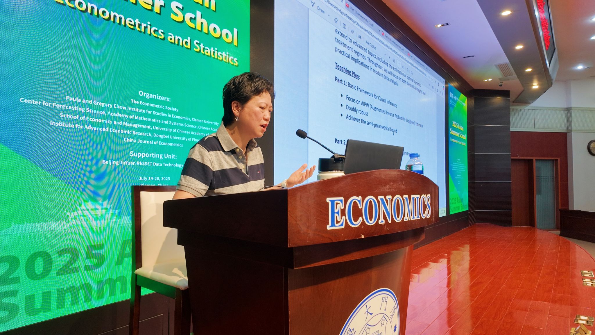 2025年7月16日-17日,美国爱荷华州立大学的Cindy Yu教授为“2025亚洲计量经济学与统计学暑期学校”的学员们带来了为期两天的精彩课程,授课主题为Causal Inference as a Missing Data Problem: Foundations and Extensions”。 Yu教授深入浅出的讲解,为学员们打开了因果推断前沿研究的大门。