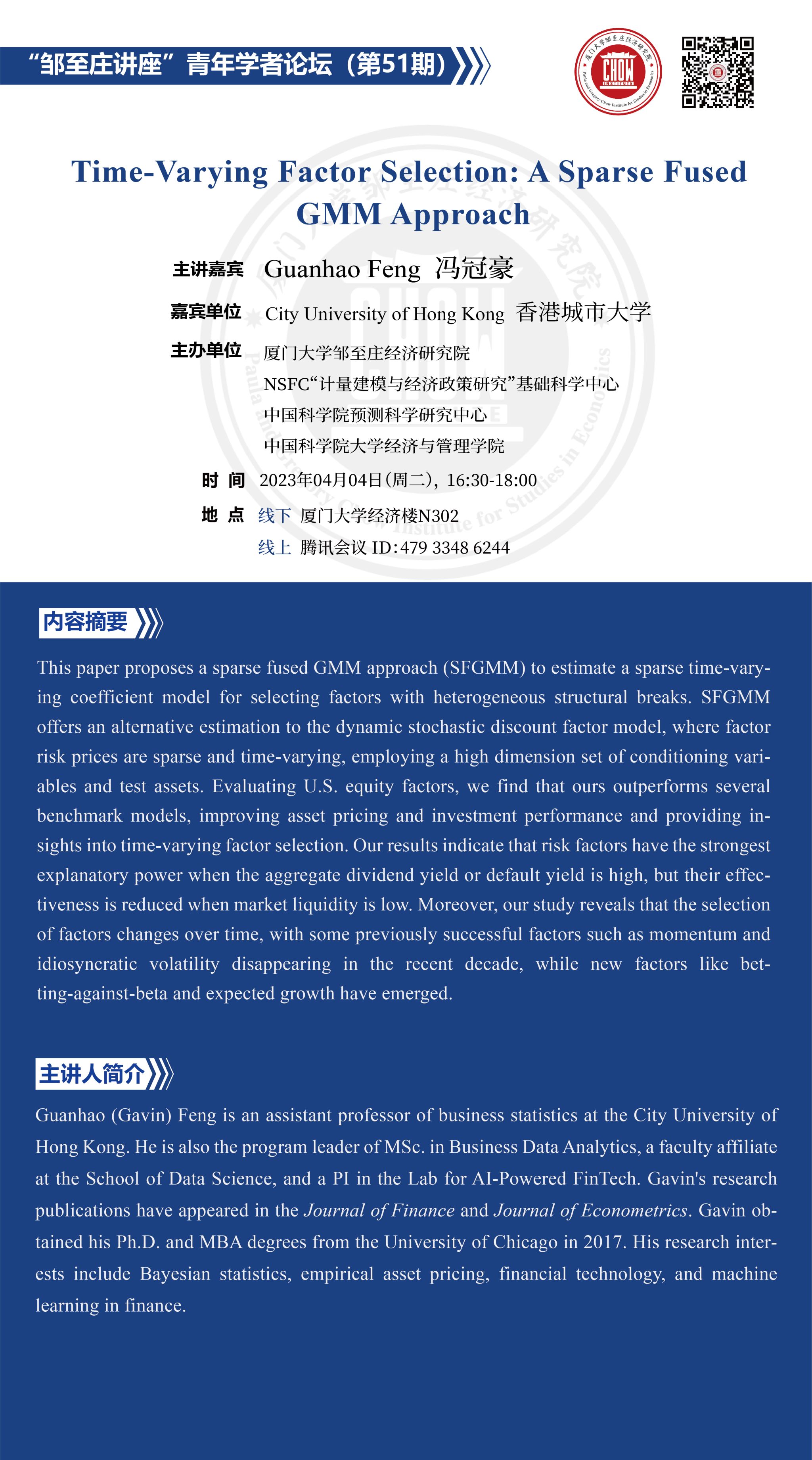 主讲嘉宾:Guanhao Feng(冯冠豪),City University of Hong Kong(香港城市大学)