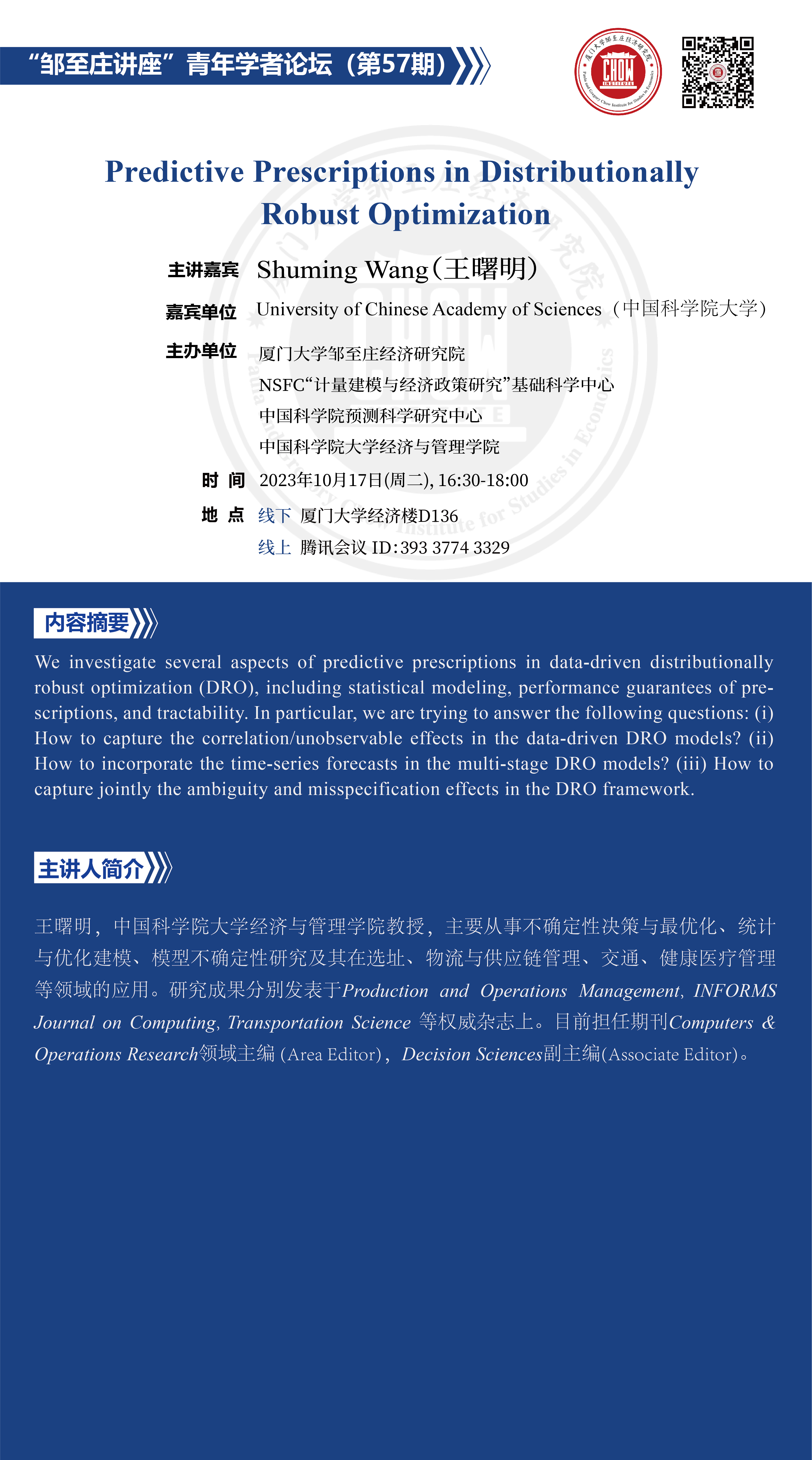 报告题目:Predictive Prescriptions in Distributionally Robust Optimization