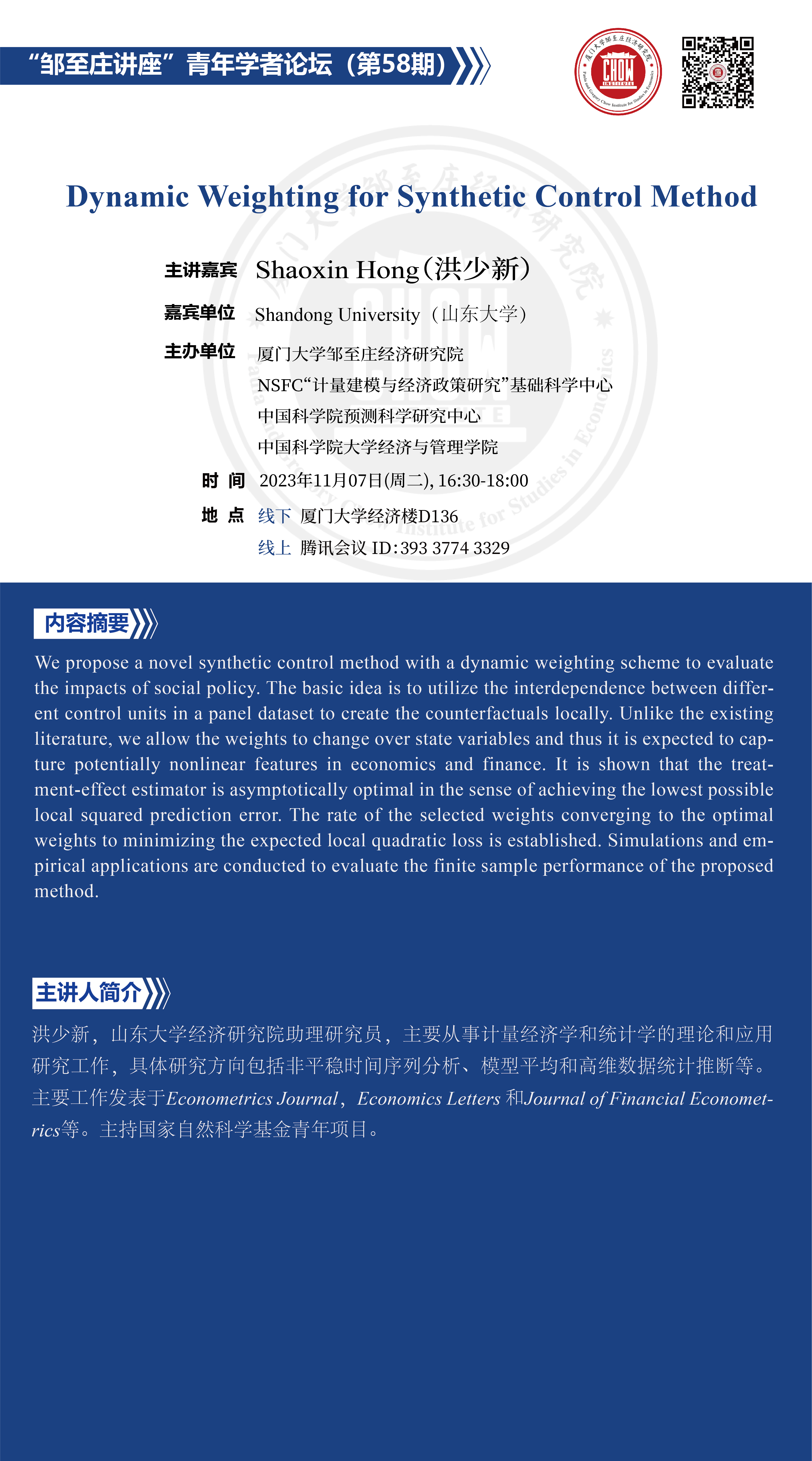 报告题目:Dynamic Weighting for Synthetic Control Method