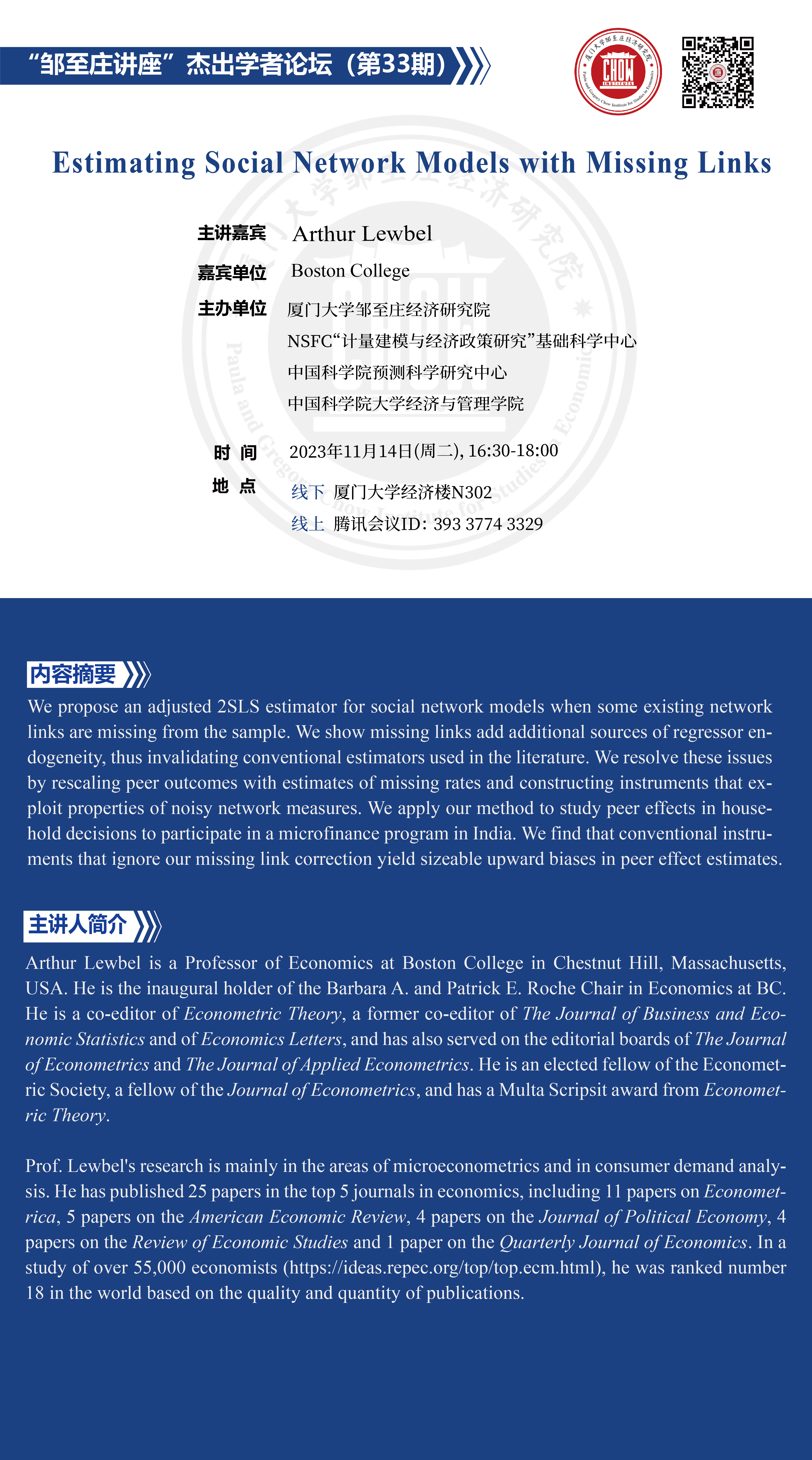 主讲嘉宾:Arthur Lewbel, Boston College