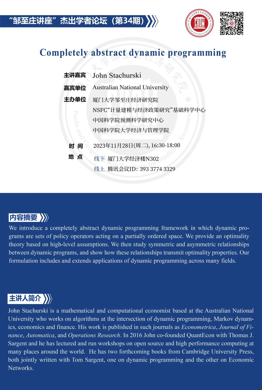 John Stachurski is a mathematical and computational economist based at the Australian National University who works on algorithms at the intersection of dynamic programming, Markov dynamics, economics and finance. His work is published in such journals as Econometrica, Journal of Finance, Automatica, and Operations Research. In 2016 John co-founded QuantEcon with Nobel Laureate Thomas J. Sargent and he has lectured and run workshops on open source and high performance computing at many places around the world. He has two forthcoming books from Cambridge University Press, both jointly written with Tom Sargent, one on dynamic programming and the other on Economic Networks.