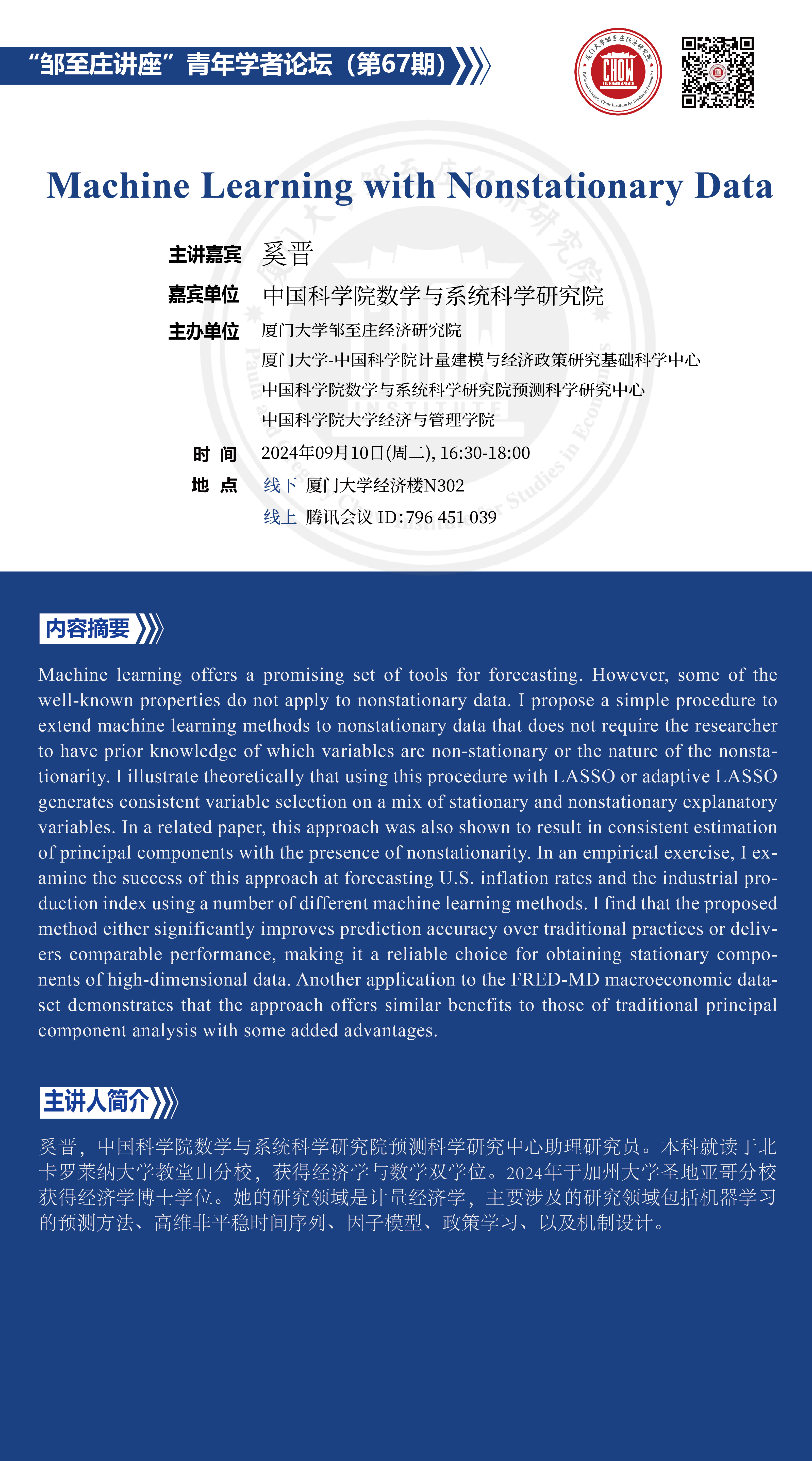报告题目:Machine Learning with Nonstationary Data