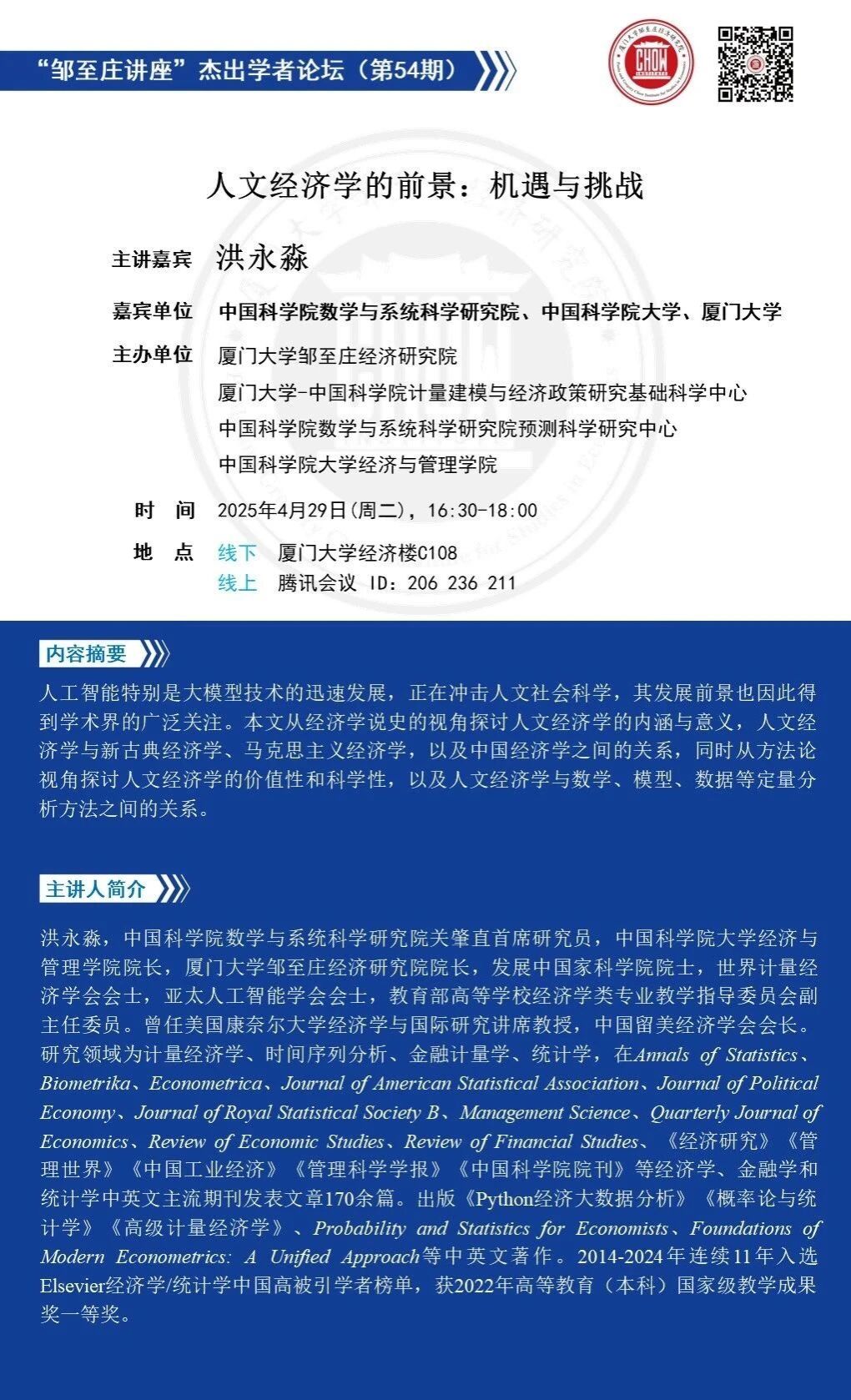中国科学院数学与系统科学研究院关肇直首席研究员,中国科学院大学经济与管理学院院长,厦门大学邹至庄经济研究院院长,发展中国家科学院院士,世界计量经济学会会士,亚太人工智能学会会士,教育部高等学校经济学类专业教学指导委员会副主任委员。曾任美国康奈尔大学经济学与国际研究讲席教授,中国留美经济学会会长。研究领域为计量经济学、时间序列分析、金融计量学、统计学,在Annals of Statistics、Biometrika、Econometrica、Journal of American Statistical Association、Journal of Political Economy、Journal of Royal Statistical Society B、Management Science、Quarterly Journal of Economics、Review of Economic Studies、Review of Financial Studies、《经济研究》《管理世界》《中国工业经济》《管理科学学报》《中国科学院院刊》等经济学、金融学和统计学中英文主流期刊发表文章170余篇。出版《Python经济大数据分析》《概率论与统计学》《高级计量经济学》、Probability and Statistics for Economists、Foundations of Modern Econometrics: A Unified Approach等中英文著作。2014-2024年连续11年入选Elsevier经济学/统计学中国高被引学者榜单,获2022年高等教育(本科)国家级教学成果奖一等奖。