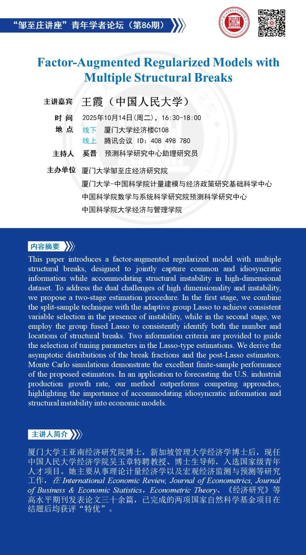 报告题目:Factor-Augmented Regularized Models with Multiple Structural Breaks