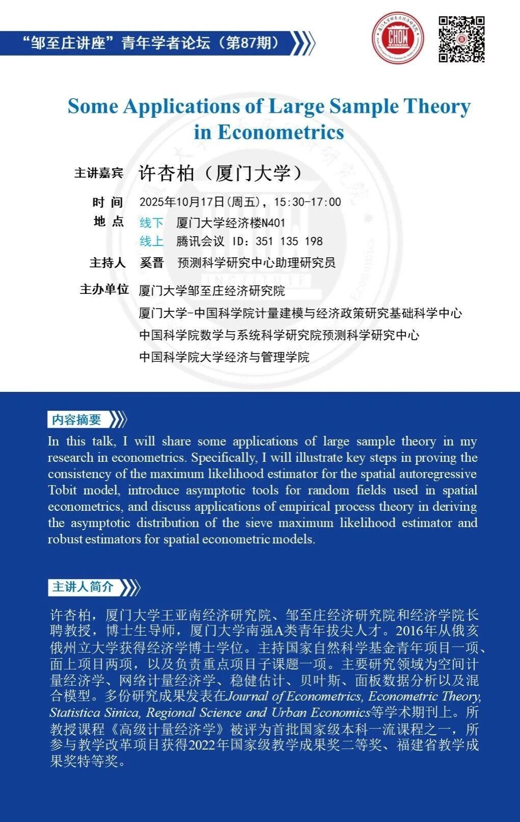 报告题目:Some Applications of Large Sample Theory in Econometrics